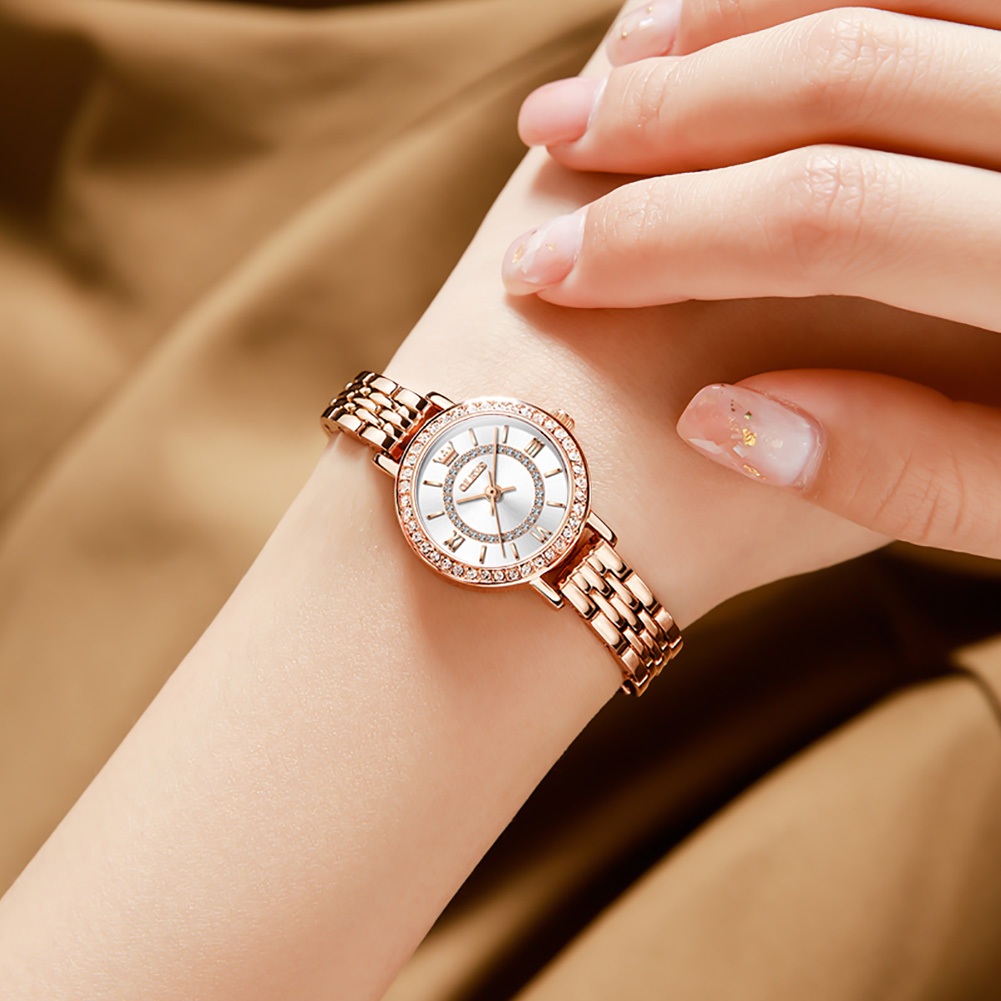 OLEVS Jam Tangan Wanita Anti Air Kecil Original Rantai Terbaru 2025 Korea Elegan Analog Quartz Branded Rose Women W