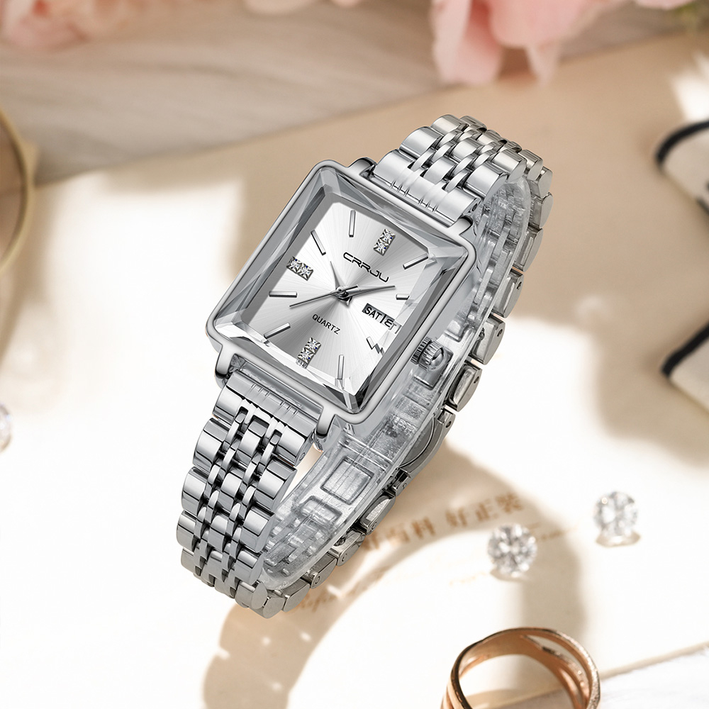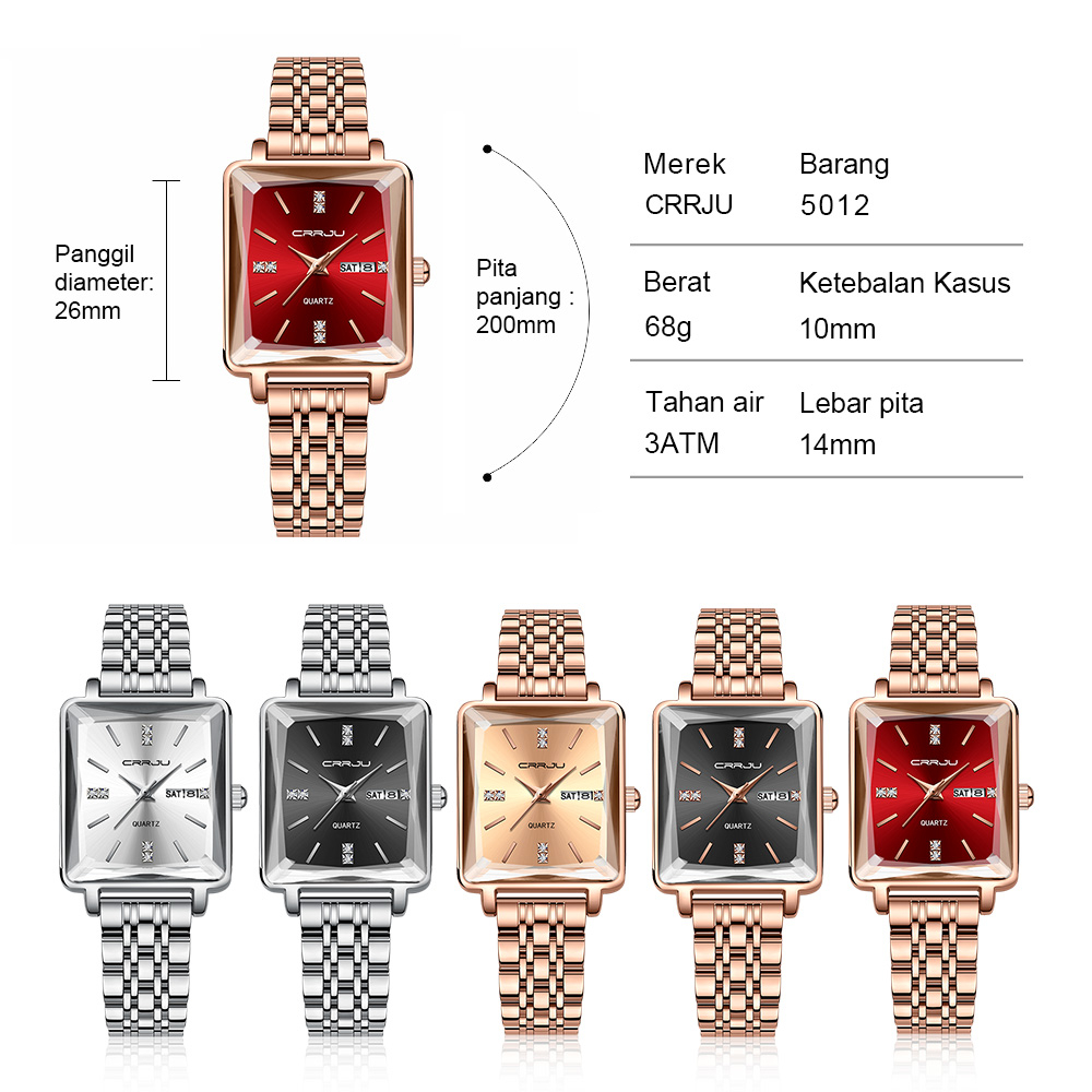 CRRJU Jam Tangan Wanita Baru Original Anti Air Tali Stainless Steel Jam Kuarsa Santai Mewah 5012