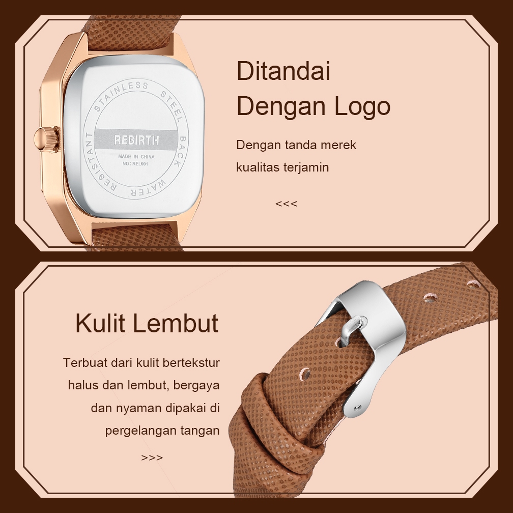 REBIRTH Jam Tangan Wanita Korea Fashion Anti Air Original Tali Kulit Jam Tangan Cewek