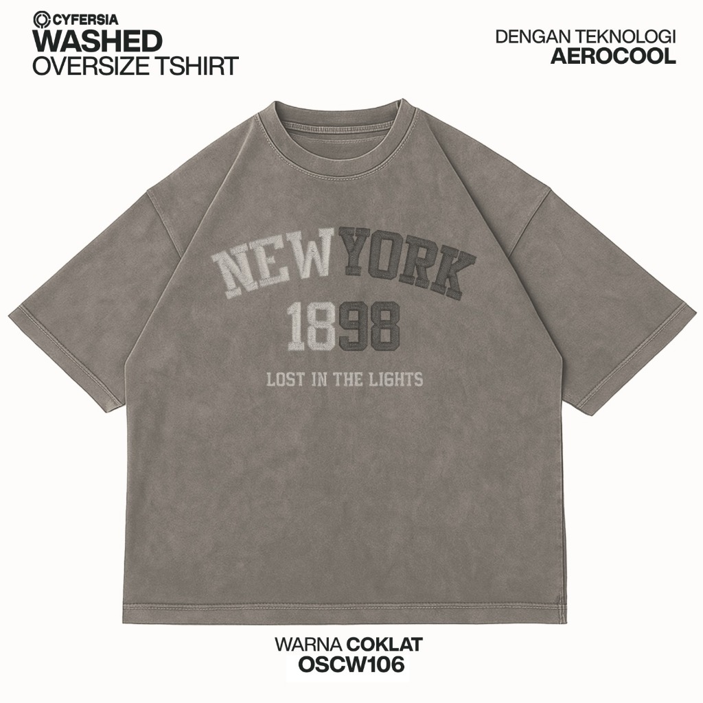 Cyfersia Atasan Kaos Oversize Boxy Wash Look New York 1898 Bahan Aerocool Anti Gerah Nyaman Seharian OSCW106