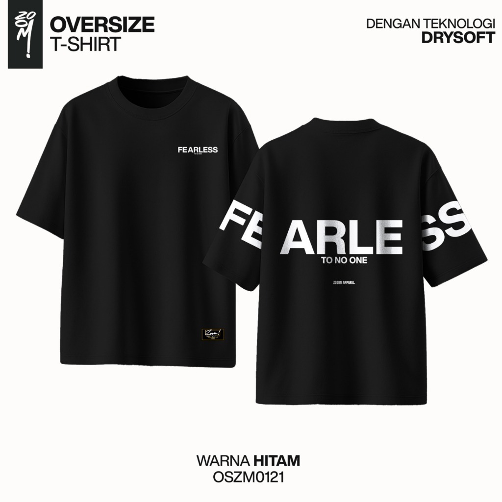 Zoomi Kaos Oversize Full Katun 16s Tebal, Lembut, Anti Gerah Sablon DTF Kuat OSZM0121 Fearless