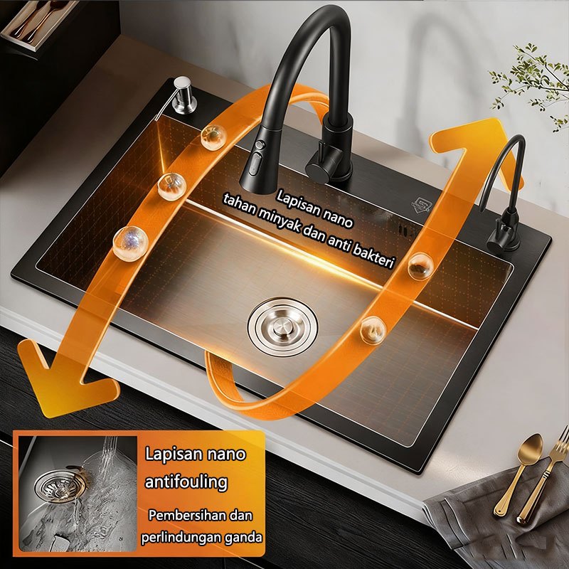 COZY SUS 304 Stainless Steel Kitchen sink Modern 3.0mm Bak Cuci Piring Stainless Hitam cuci piring Ketebalan wastaf