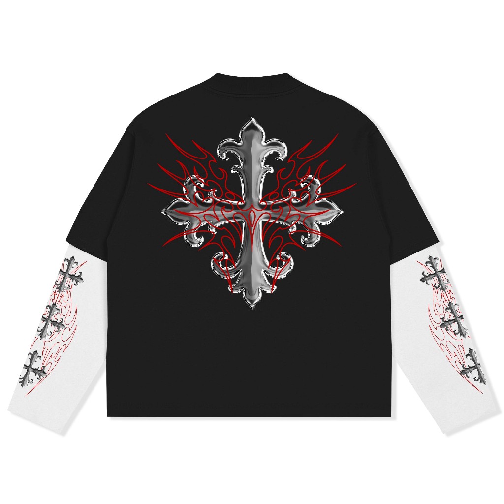 Popsicles Boxy Oversized Double Sleeve Tshirt Blessing Black Unisex - Cotton Combed 20s
