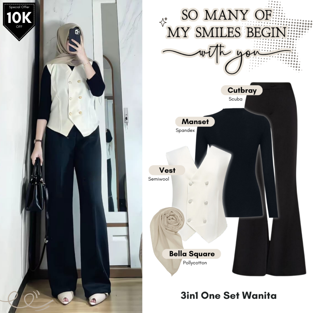 GRL 129 | One Set Remaja Wanita 4in1 | Vest + Manset + Cutbray + Bella Square | fit Kekinian Look