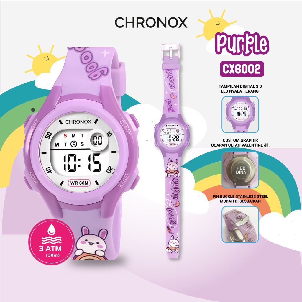 CHRONOX CX6002 - Jam Tangan Anak Digital Anti Air Waterproof Sporty Fashion [Bisa Custom Nama]