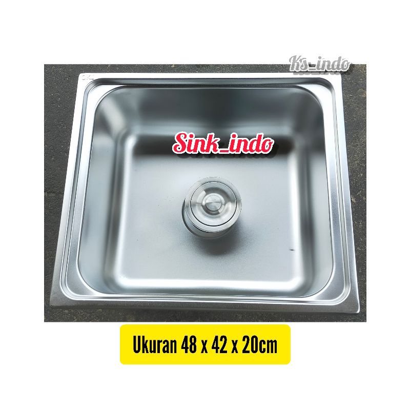 TERLARIS Bak Cuci Piring Stainless Oki 48 x 42 x 20 Bak Cuci Piring 1 Lubang westafel cuci piring Oki Kitchen Sink wasta