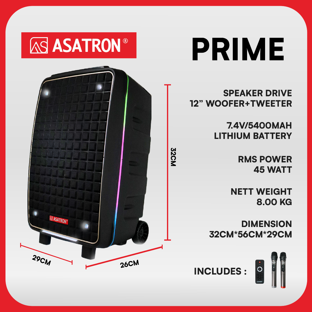 Asatron Prime 12 Inch Bluetooth Karaoke Party Speaker with 2 Wireless Mic TWS