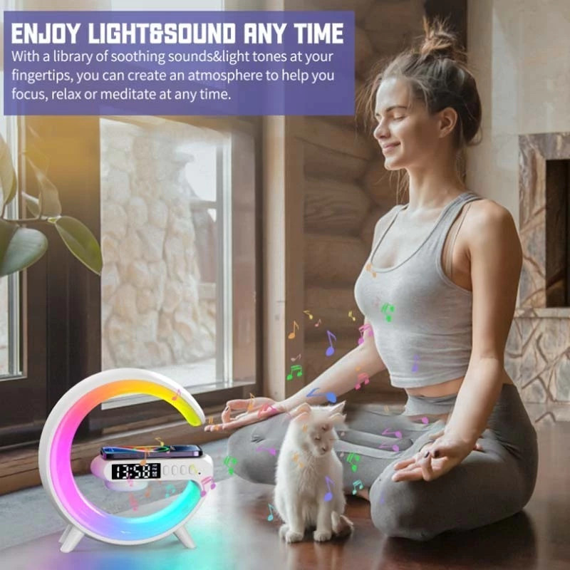 Speaker Bluetooth Kuat dengan Pengisian Nirkabel Tampilan Jam LED Bass RGB Lampu Meja Multifunctional Speaker Bluet