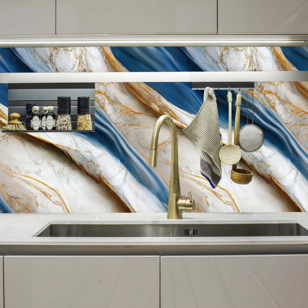 stiker dinding dapur anti minyak dan panas motif marmer – aluminium f, ukuran 60cm x 6m