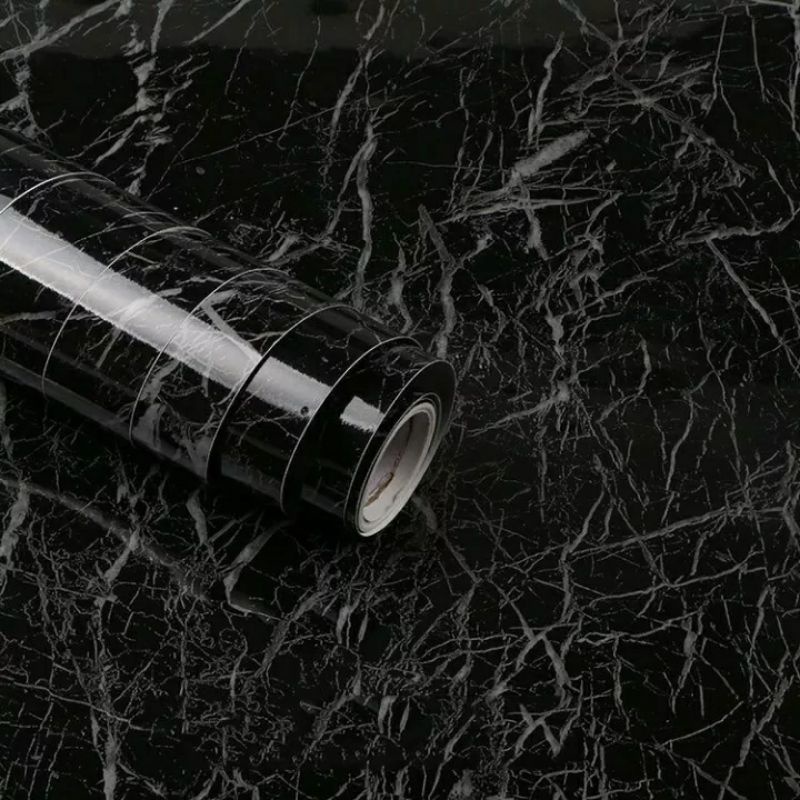Wallpaper Sticker Dinding Marmer Hitam New 10mx45cm