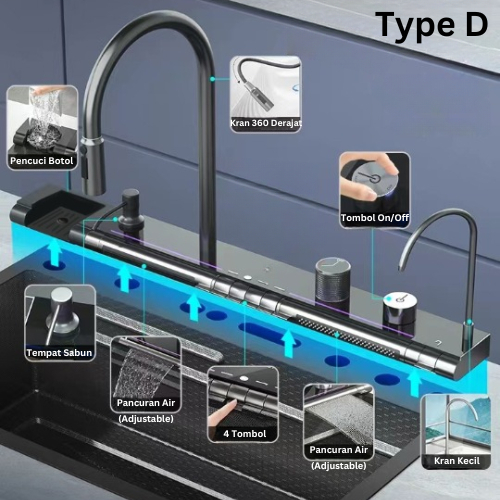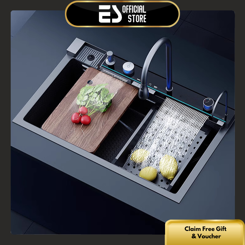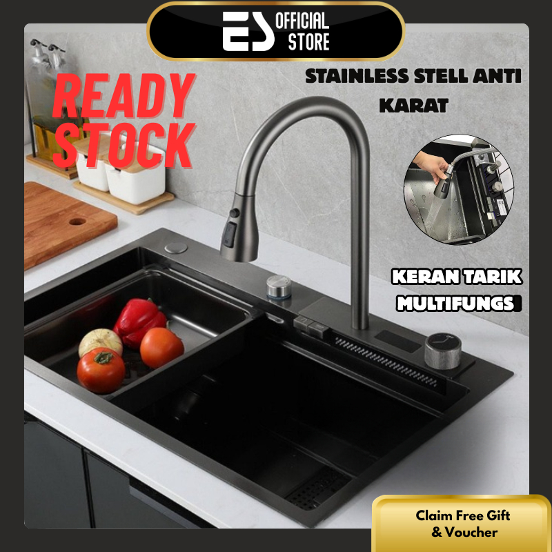 ES Kitchen Sink Wastafel Stainless Steel Bak Cuci Piring Wastafel Dapur Lengkap Tarik Adjustable