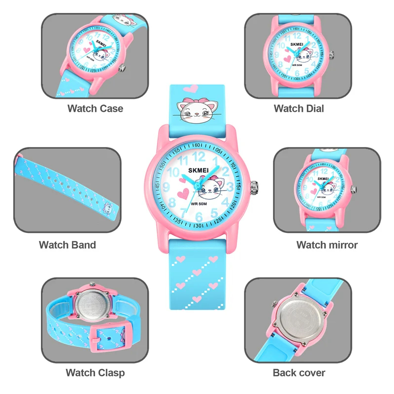 Jam Tangan Analog Anak SKMEI 2157 BLUE PINK CAT WATER RESIS 30M