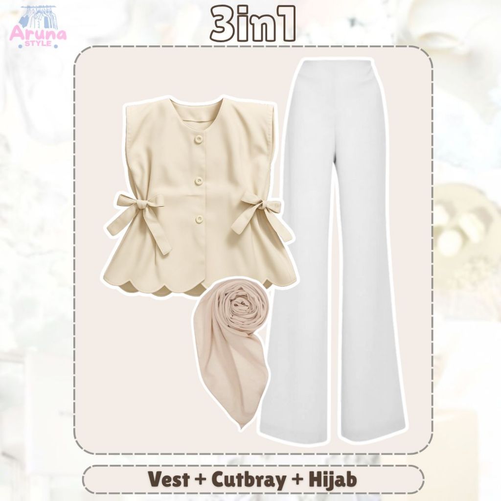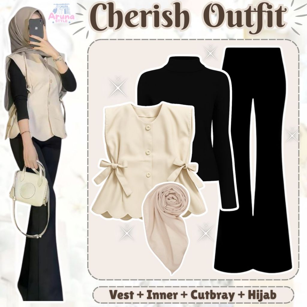 Setelan Remaja Kekinian Vest Cherish, Inner, Cutbray, Bella Square One Set Cewek Masa Kini AS4V