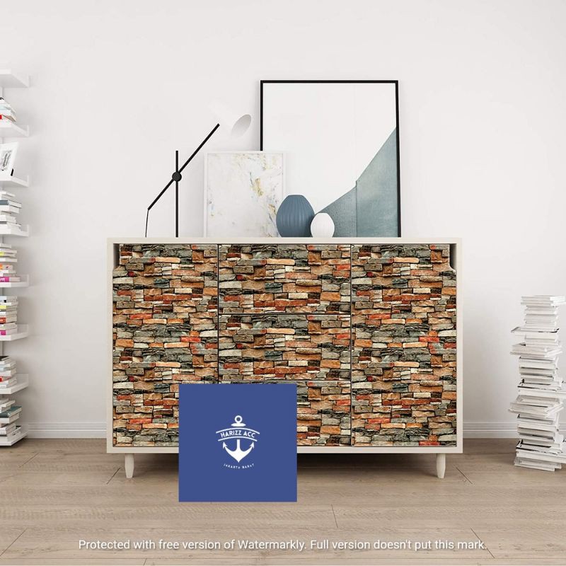 Wallpaper stiker dinding motif batu alam multi color 45cm x 8-9m