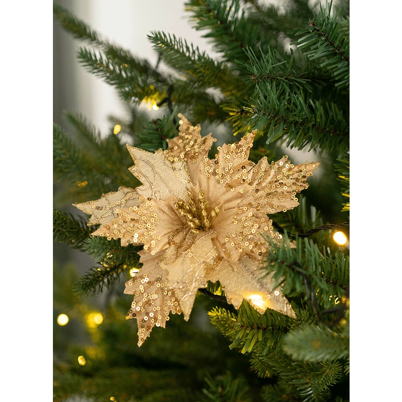 23cm Bunga Hiasan Dekorasi Natal Lace Sequin insettia Xmas