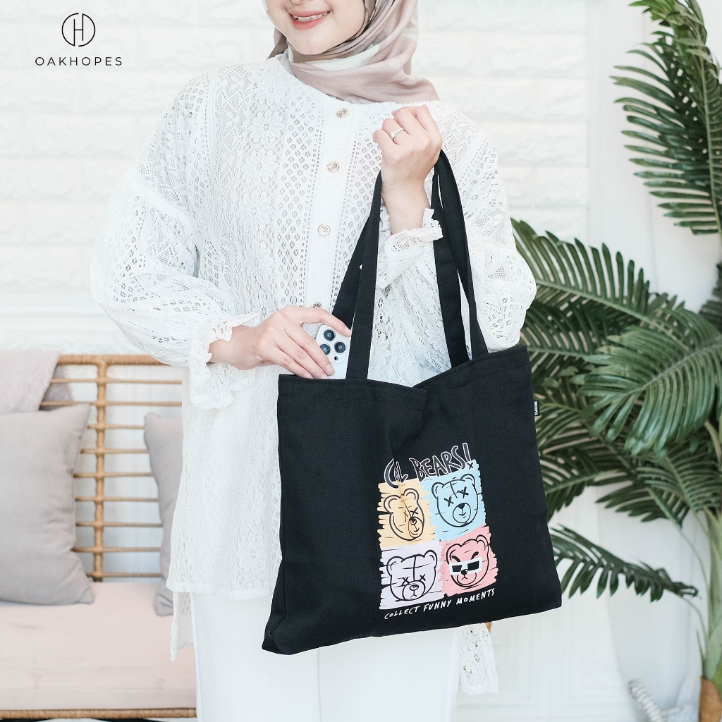 Oakhopes - Tas Tote Bag Kanvas Resleting - Clair Totebag Hitam Pria Wanita