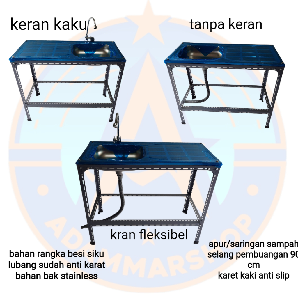 wastafel portable/bak cuci piring/kitchen sink stainless ukuran 96x43 cm
