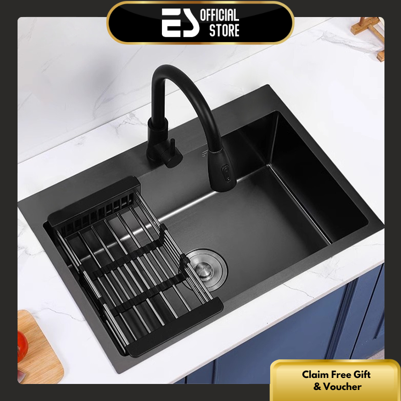 [Spesial Live] ES Kitchen Sink Wastafel Stainless Steel Bak Wastafel Dapur Lengkap Tarik Adjustable