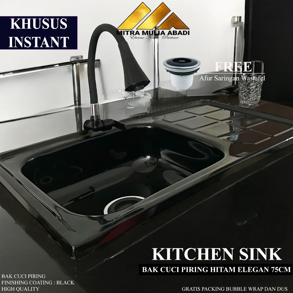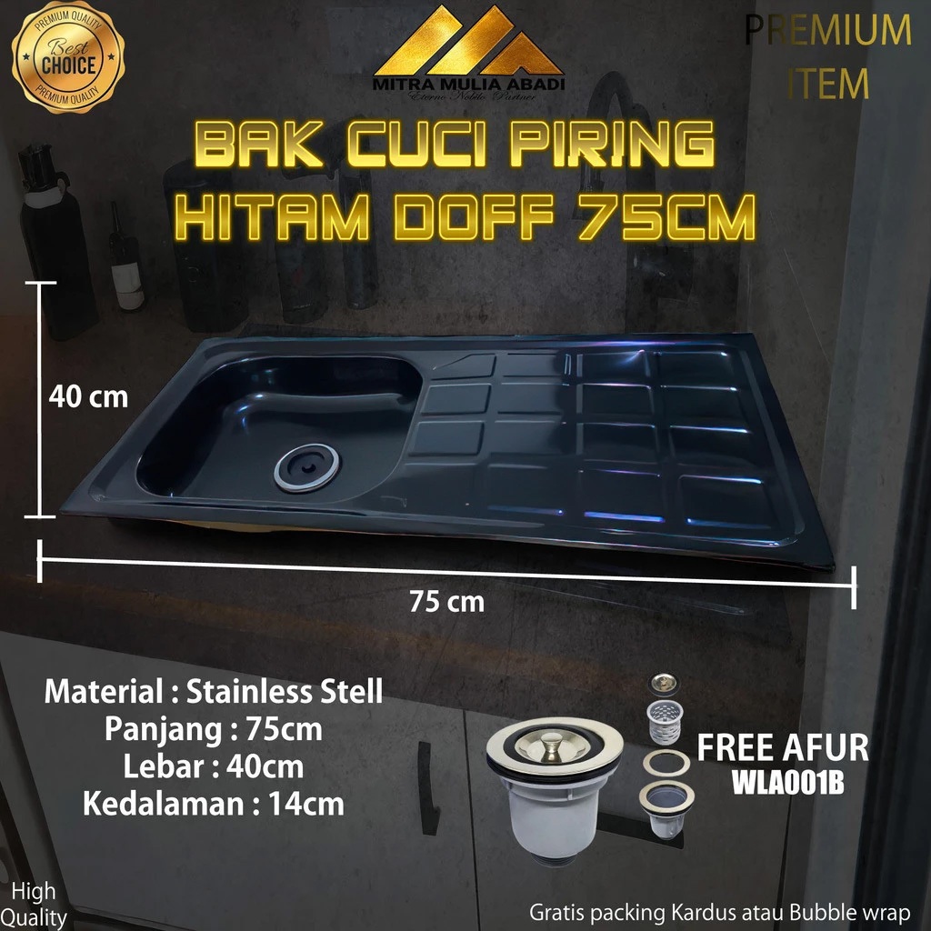 KHUSUS T Bak Cuci Piring Hitam Doff Stainless Steel 75cm Fullset Wastafel Kitchen Sink