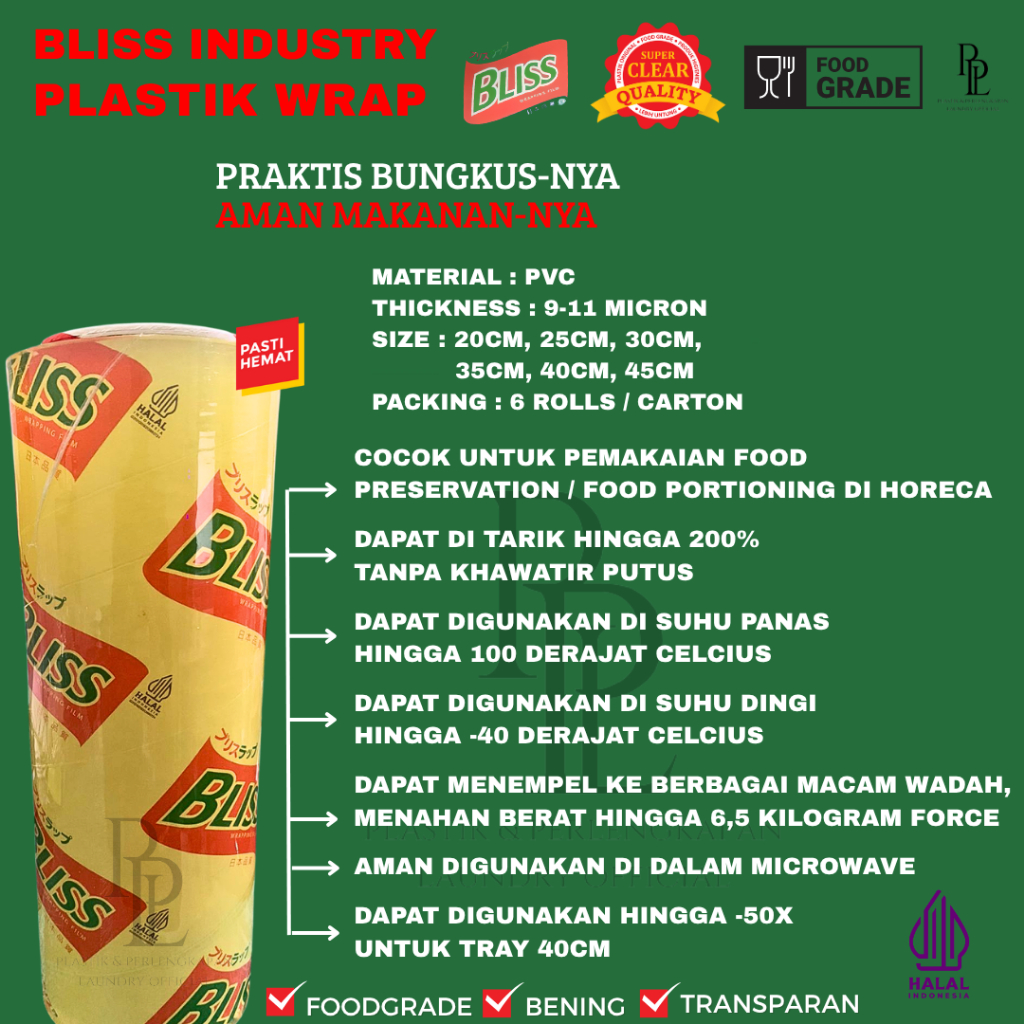 PLASTIK FOOD WRAP | CLING WRAP | BLISS WRAPPING FILM | PLASTIK WRAPPING MAKANAN ROLL UK 20, 25, 30, 35, 40, 45 ISI