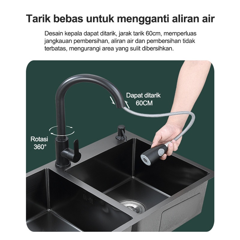Set Wastafel Cuci Piring/Set Lengkap Kitchen Sink Black 78 CM / 82CM Wastafel Stainless Hitam 304 / Wastafel Dengan Kera