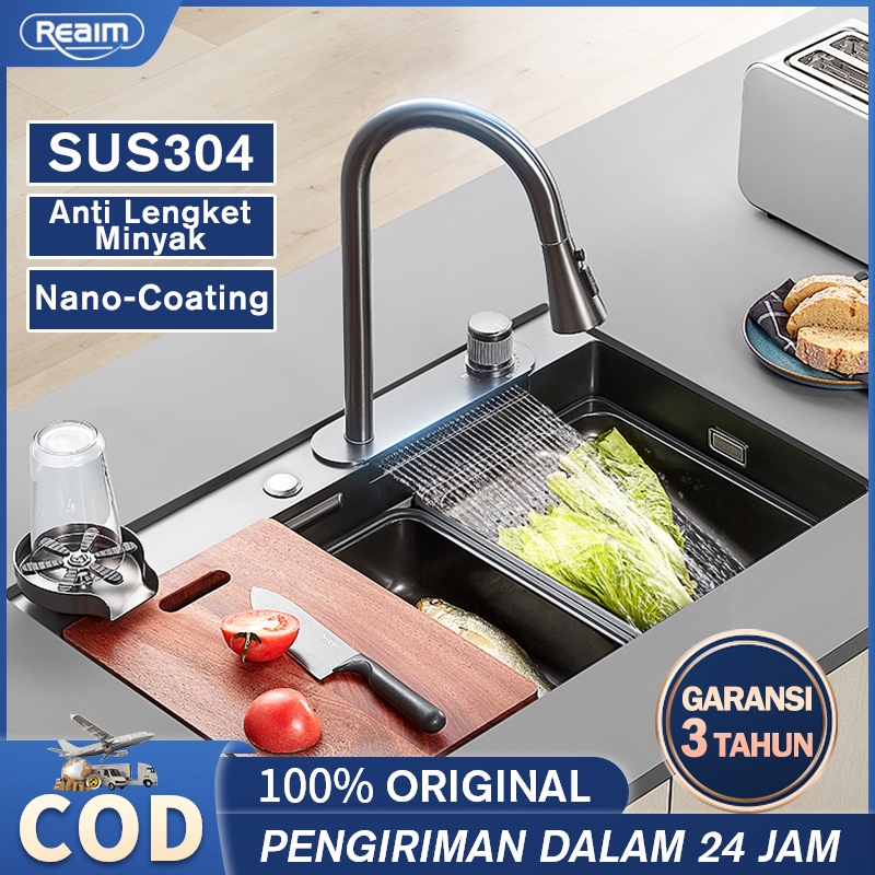 REAIM 304 Stainless Steel Kitchen sink Wastafel Cuci Piring stainless Hitam Kitchen sink cuci piring Dengan Keran Tarik