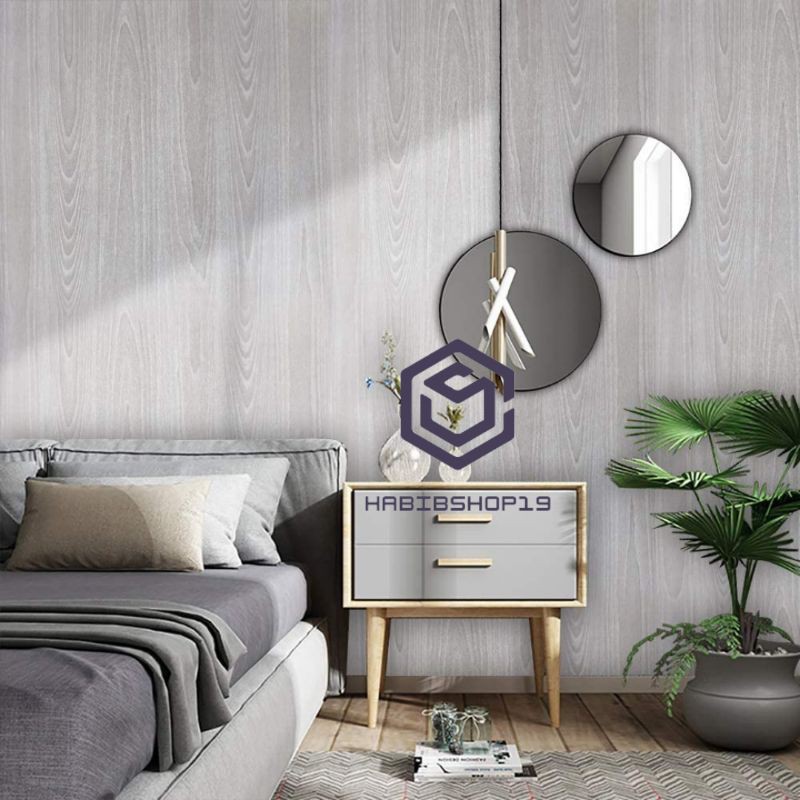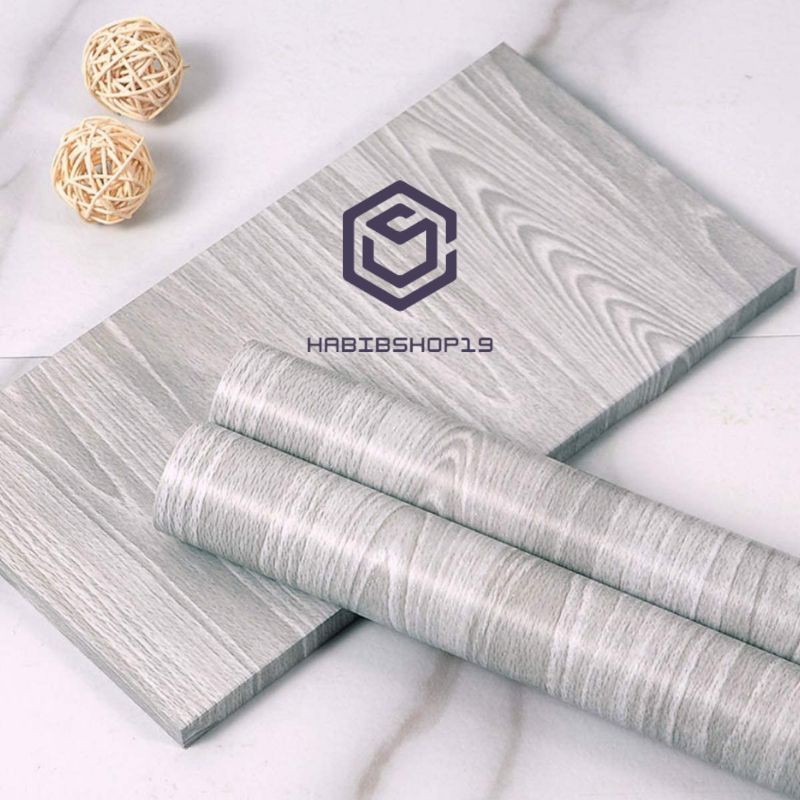 Wallpaper Stiker Dinding Motif Kayu Serat Abu New 10m x 45cm PVC