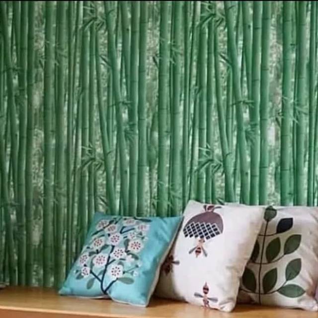 Wallpaper stiker dinding motif bambu tua 3D 45CM X 8-10M