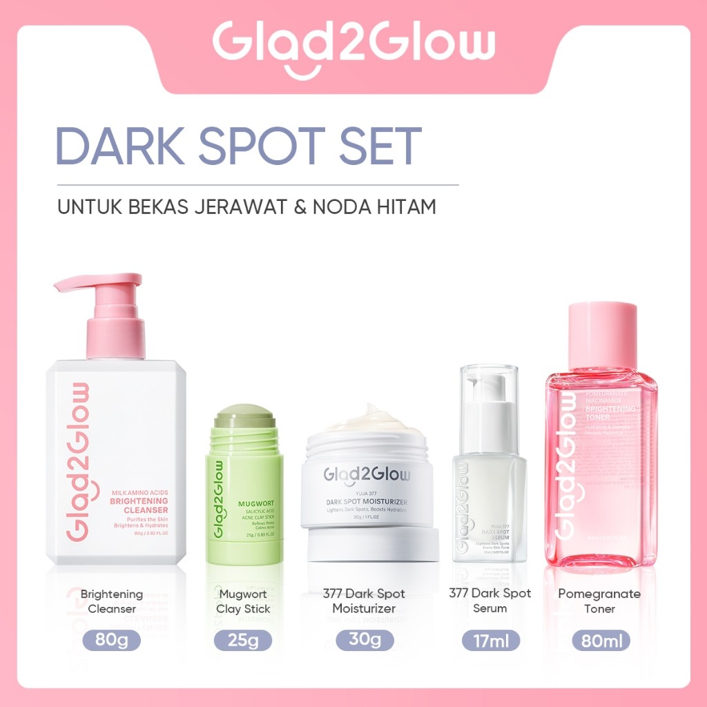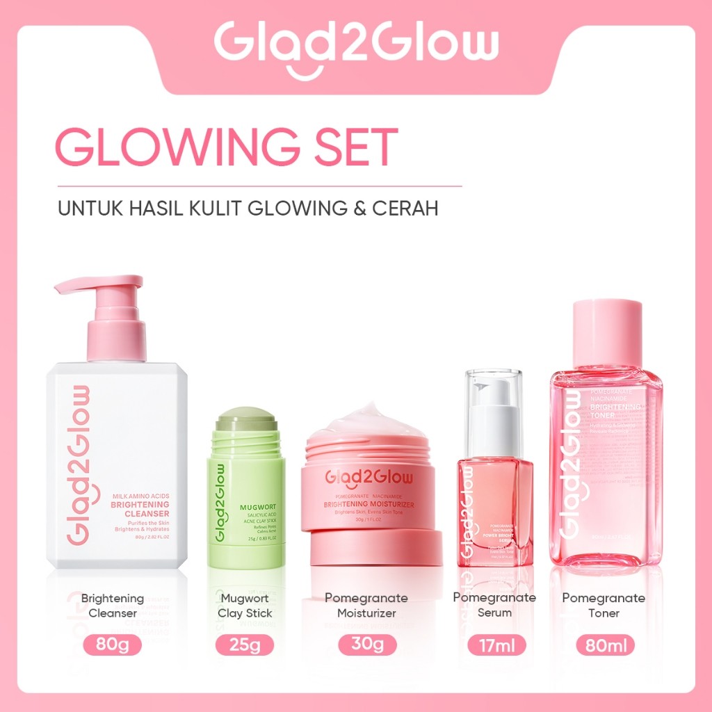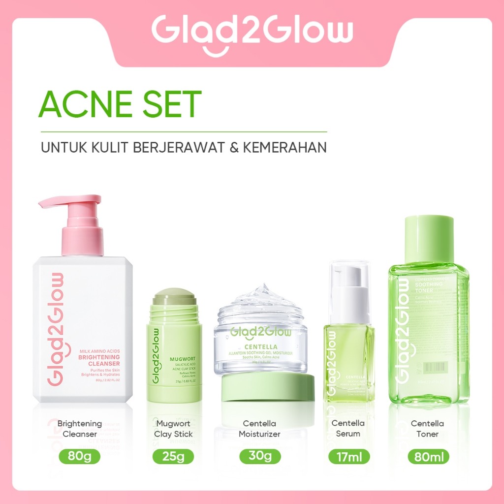 100 PERSEN ORISPECIAL BUNDLE 5in1 Glad2Glow 5pcs Paket Skincare Moisturizer Serum Face Wash Clay Mask Stick-ACNE KIT GLOWING KIT Dark St