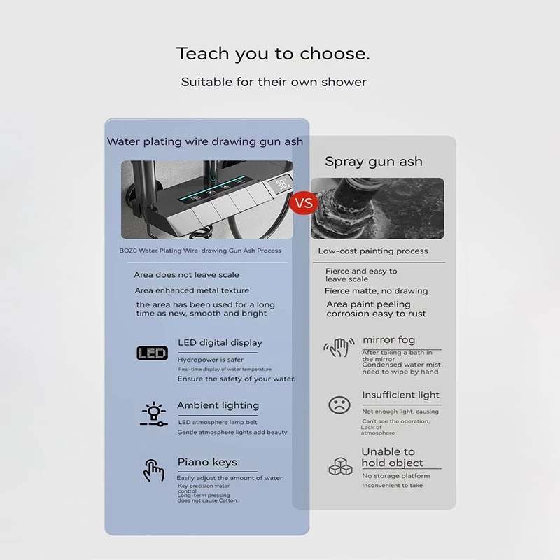 Shower Kamar Mandi Satu Set 5-In-1 Set Kran Bisa Panas Dingin Tampilan Digital Cerdas Gaya Piano Sistem Kamar Mandi Rain