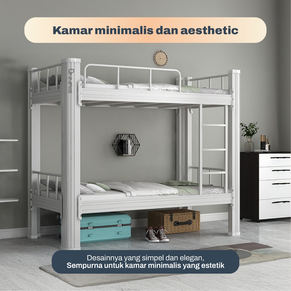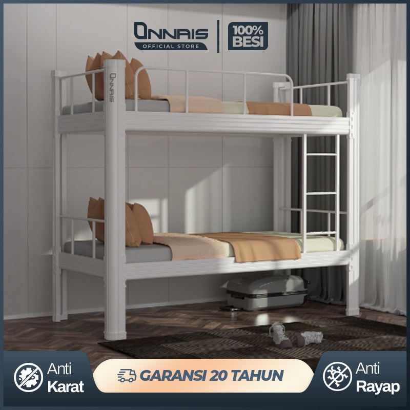 ONNAIS Ranjang Susun Besi 1-2 Tingkat Tempat Tidur Tingkat Minimalis Kuat Anti Karat DIVAN Kasur