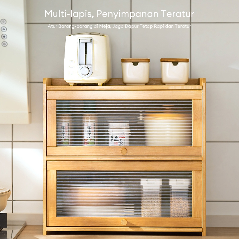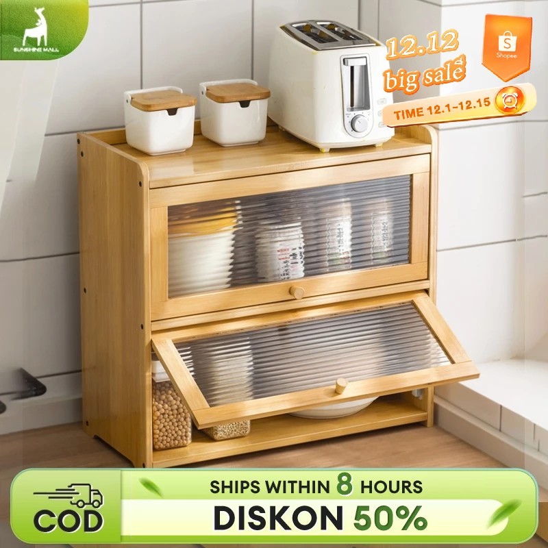 Rak Dapur Lemari Dapur Rak Dapur Kayu Lemari Piring Minimalis Rak Microwave Oven Bumbu Mini Estetik