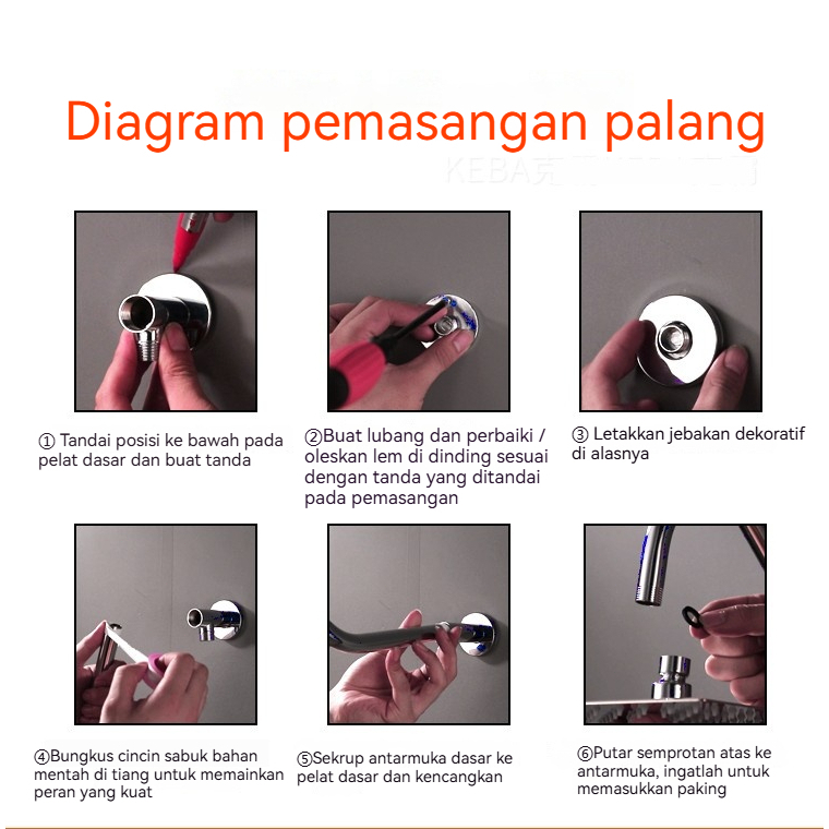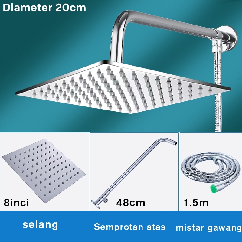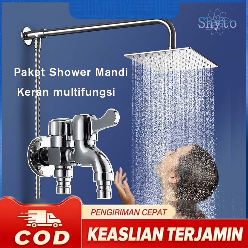 【】jerman Shower Set Kran Kamar Mandi Paket Komplit Stainless Keran Air Engkol Cabang Selang Stenlis Wall Shower Rainf