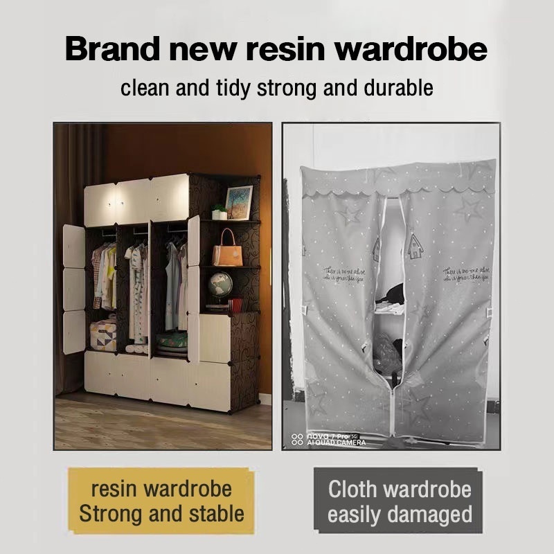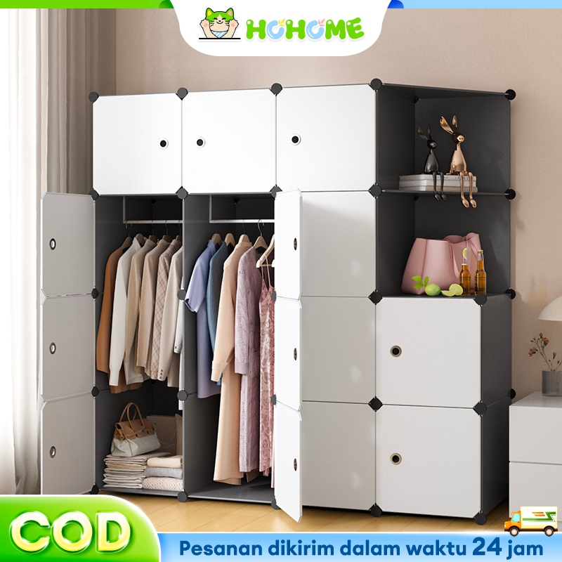 HOHome Plastik Lemari Pakaian Anti Debu Baju/Loker Pakaian Diy/Lemari Pakaian Dewasa Dan Anak/Lemari Baju Minimalis Multipintu Putih Series Termurah