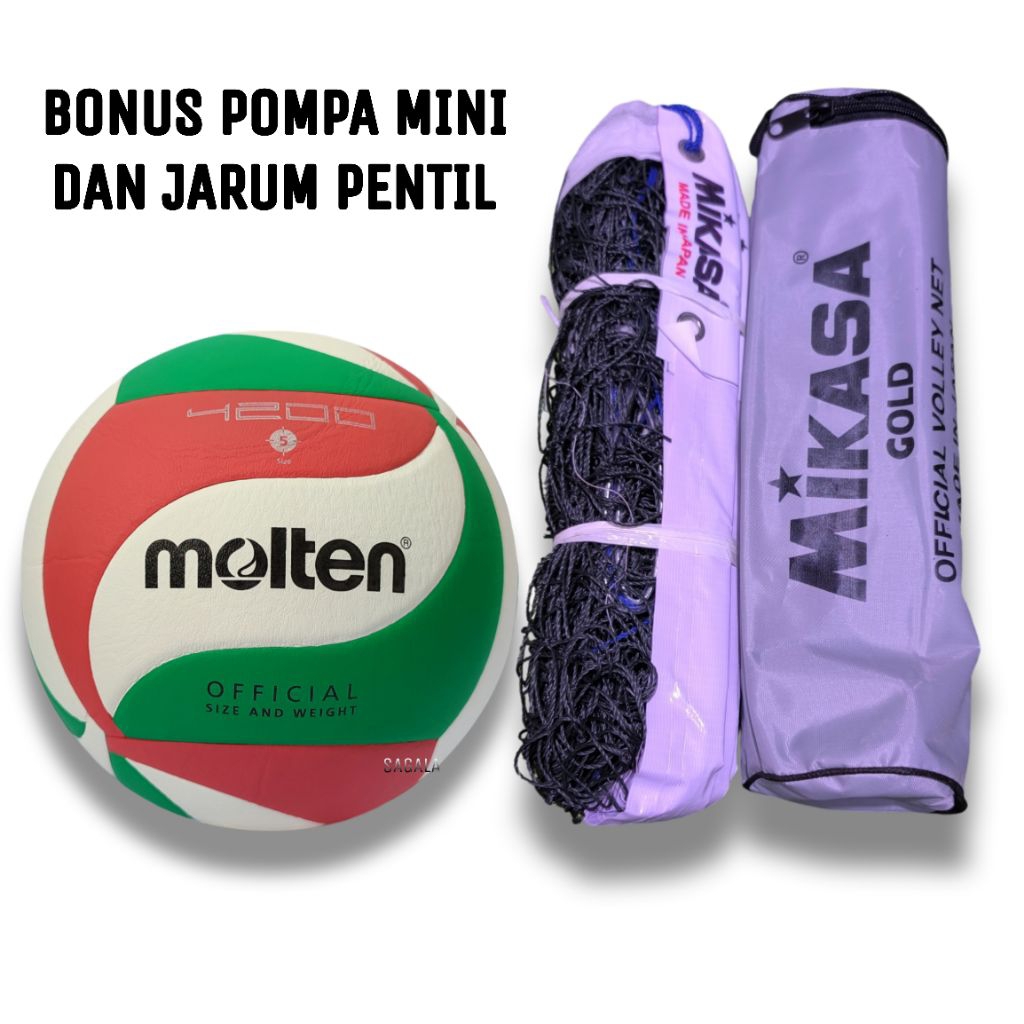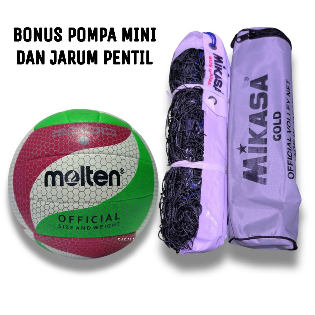 Net Voli 1 Set Bola Volly Volley Ball Dan Net Mikasa Training Match Official Size 5