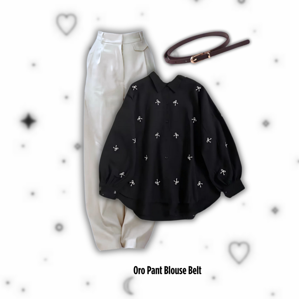One Set Wanita Korean Style Kekinian Blouse Pita Hijab Bella Square Belt Oro Pant | DSD190