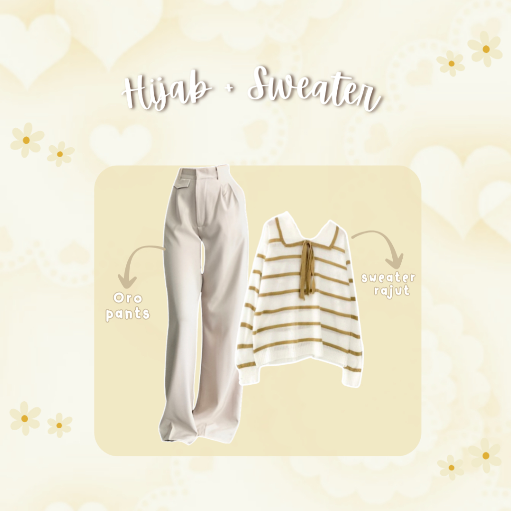 Set Korean Hijab Wanita Hijab+Sweater+Celana Set Remaja Kekinian - LO64