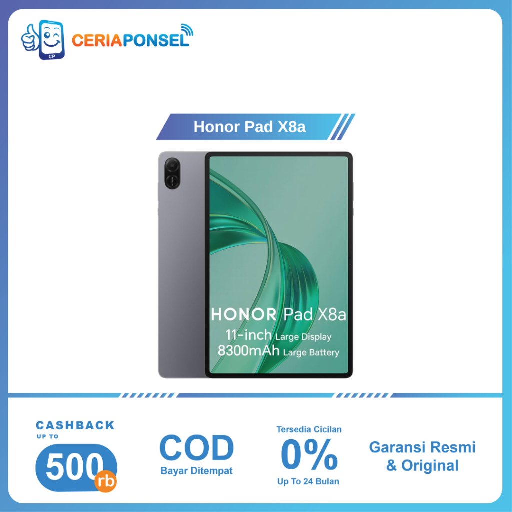 Honor Pad X8a 4/128GB LTE Snapdragon 680 4G 6 nm, 8300 mAh | Resmi Honor Indonesia 1 Tahun