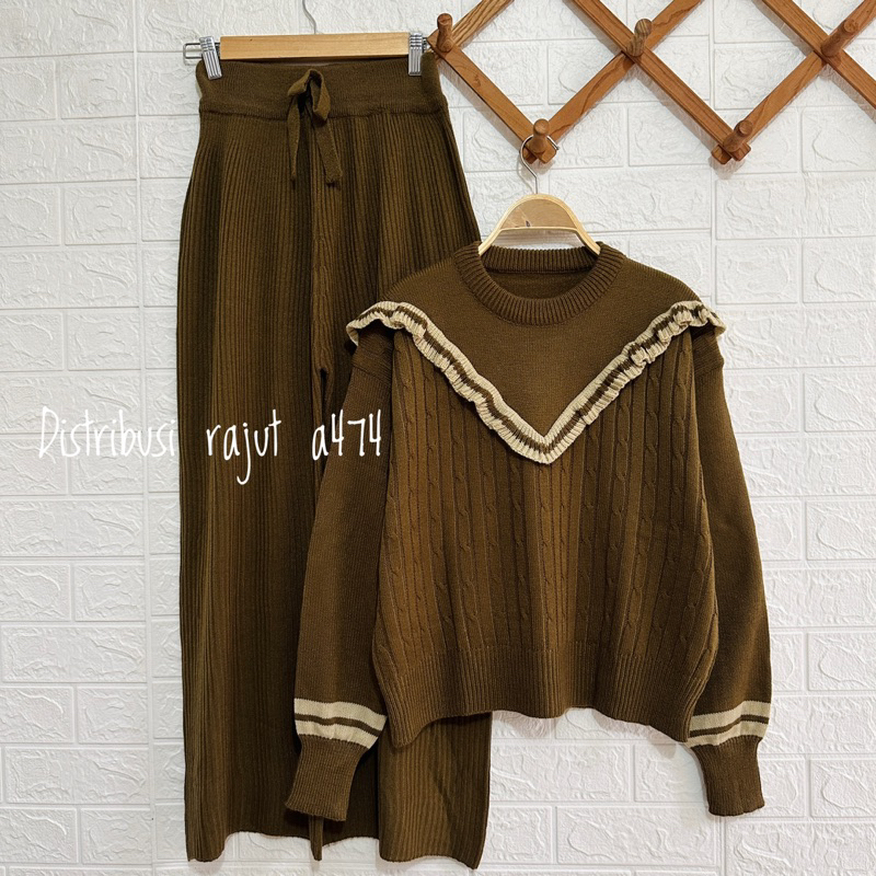 ONESET SWEATER RAJUT SAIRA SETELAN CELANA KULOT RAJUT WANITA