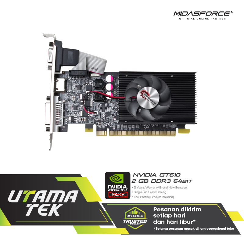 VGA NVIDIA Midasforce GT610 DDR3 64bit 2GB LP 2 Tahun