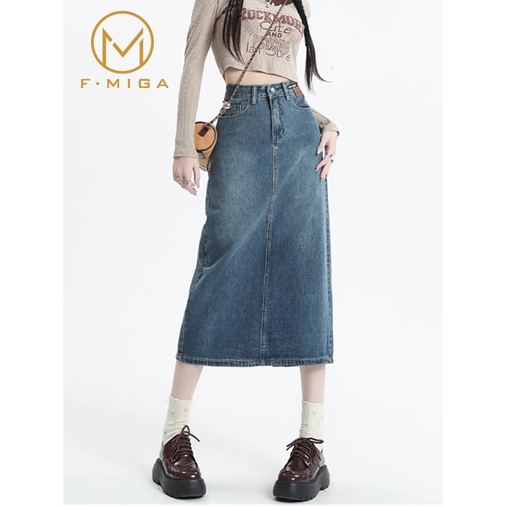 F·MIGA C107 Korean HighWaist Rok Midi Jeans Denim Wanita - Biru