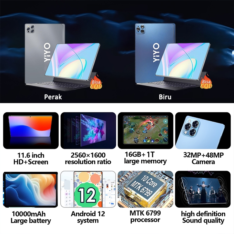 【Beli 1 Gratis 7】YIYO Tablet PC Pro11 16GB+512GB 11.6inch Tablet Murah / Tablet Android Pembelajaran laris manis SIM WIFI Tablet PC Baru untuk Belajar & Hiburan