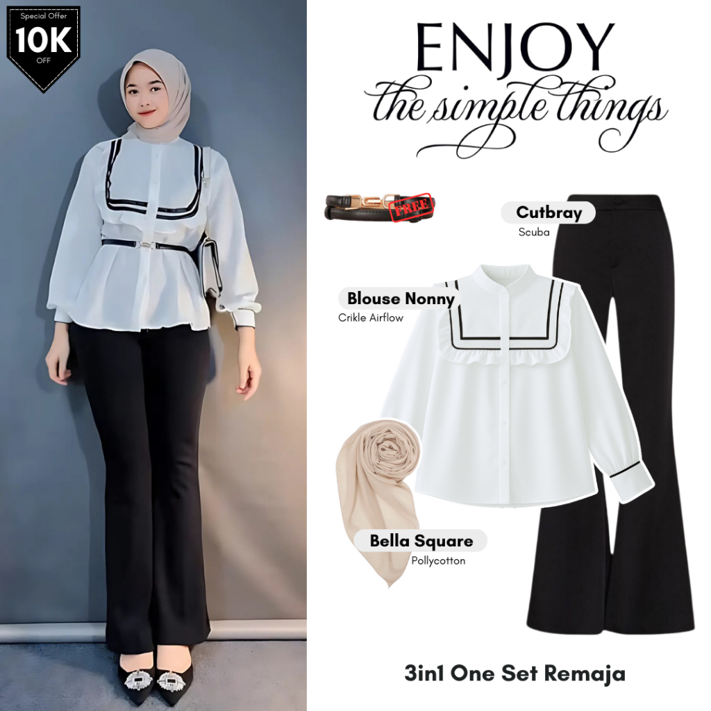 GRL 133 | One Set Remaja Wanita 3in1 | Blouse + Cutbray + Bella Square | fit Korean Look Cantik