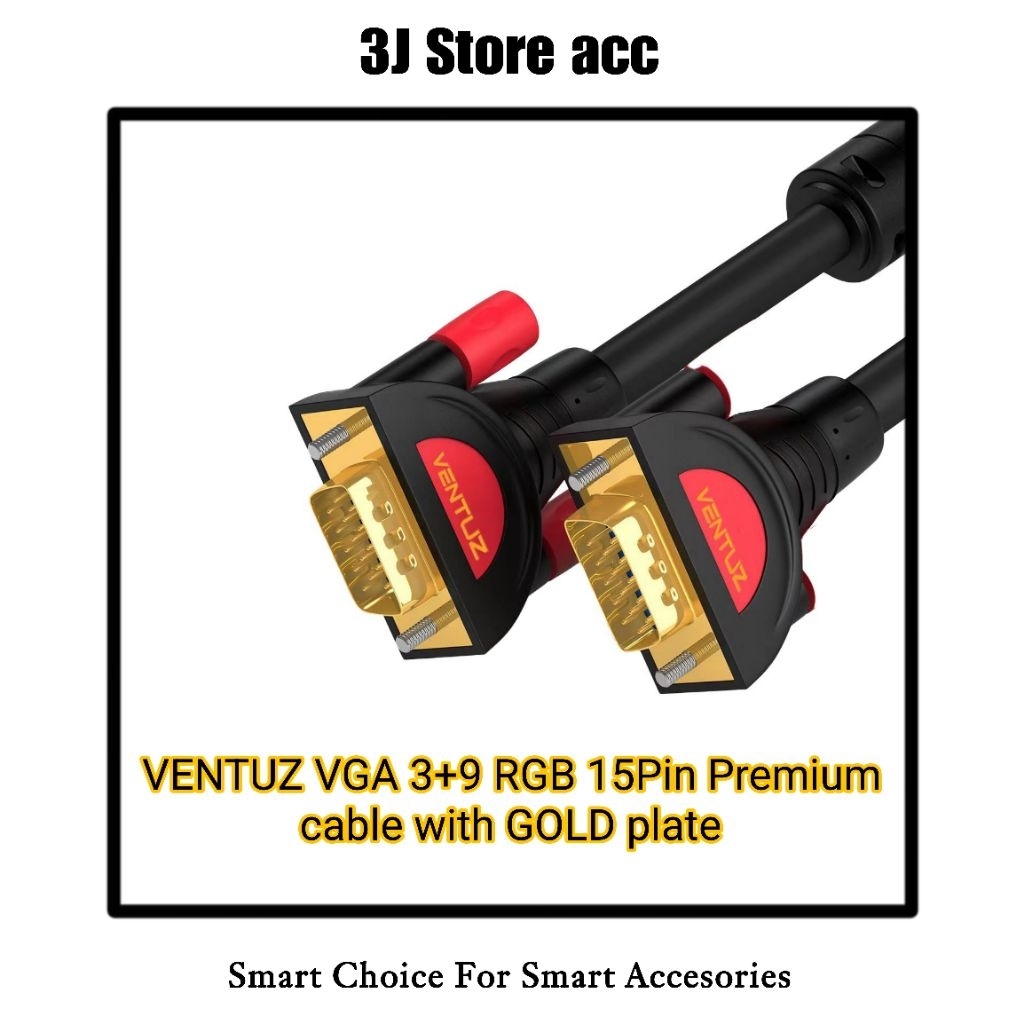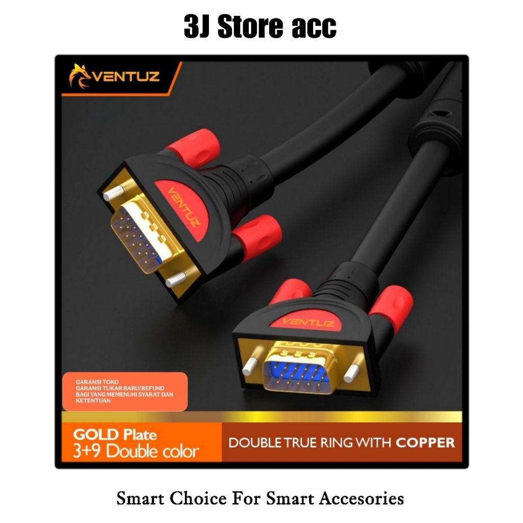 VENTUZ Kabel VGA to VGA Plated Double Ring Cooper 3+9 – High Quality VGA Cable Monitor PC Laptop Proyektor HDTV