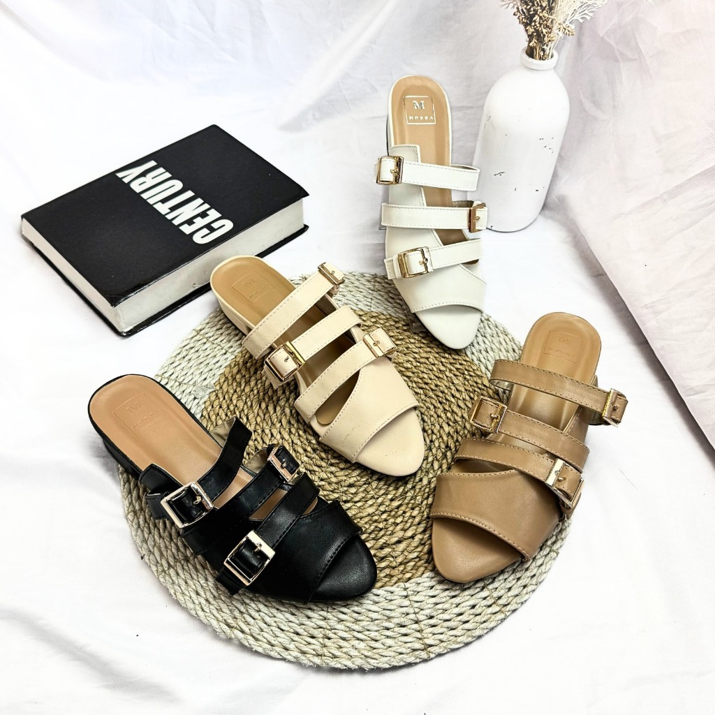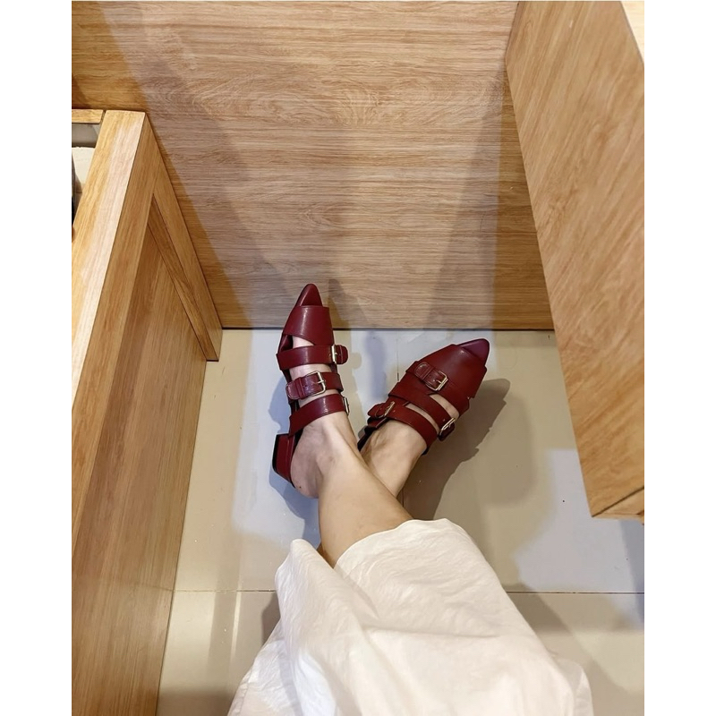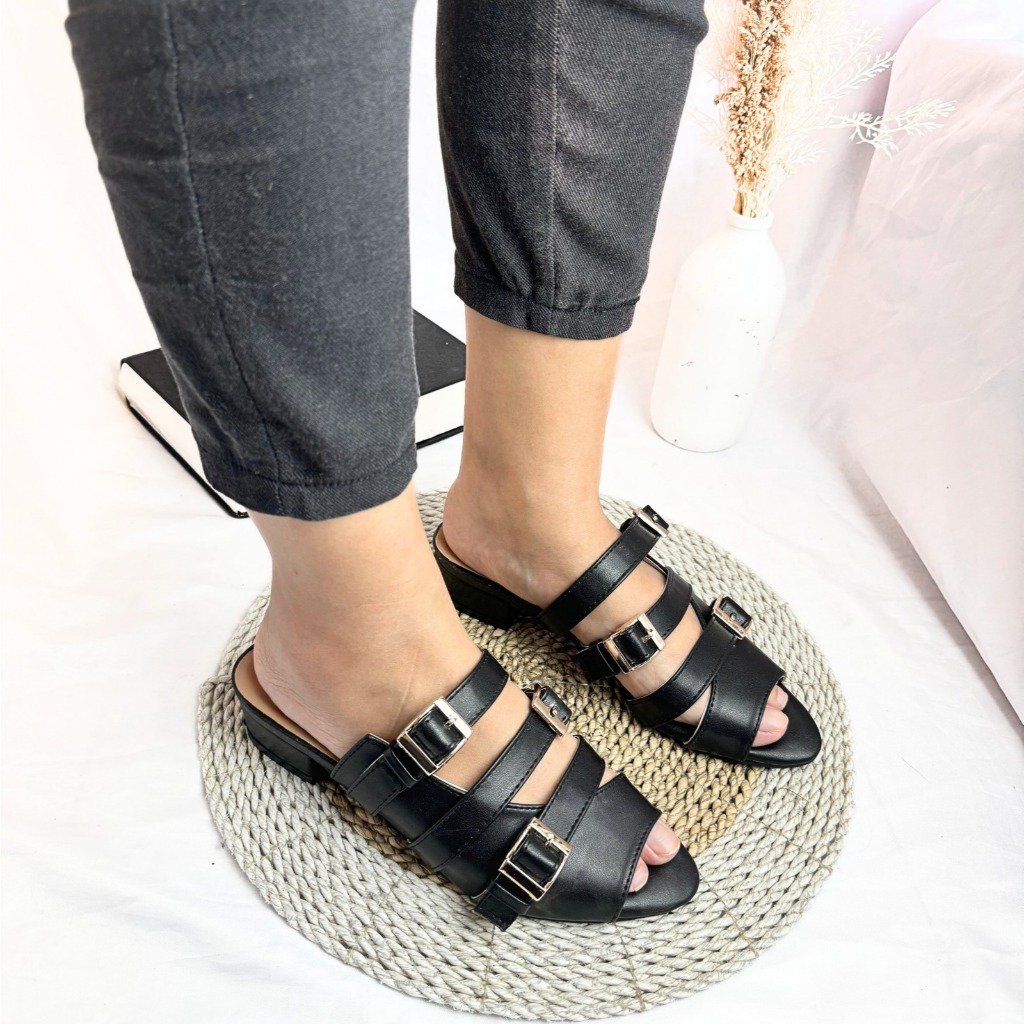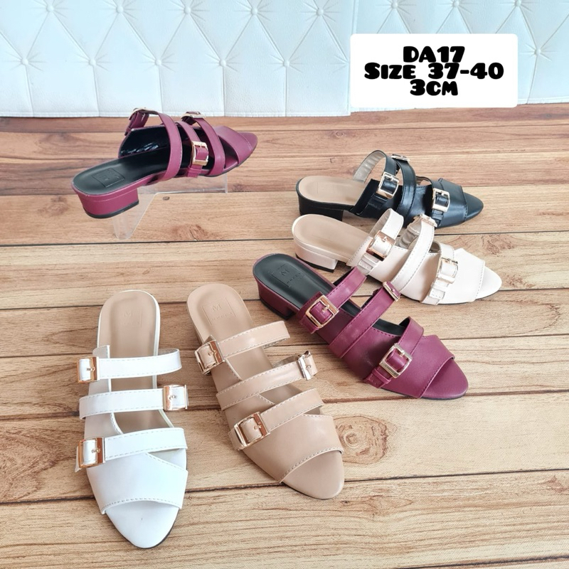 ABBUSHOES Heels wanita hak tahu runcing gesper 3cm - da 17