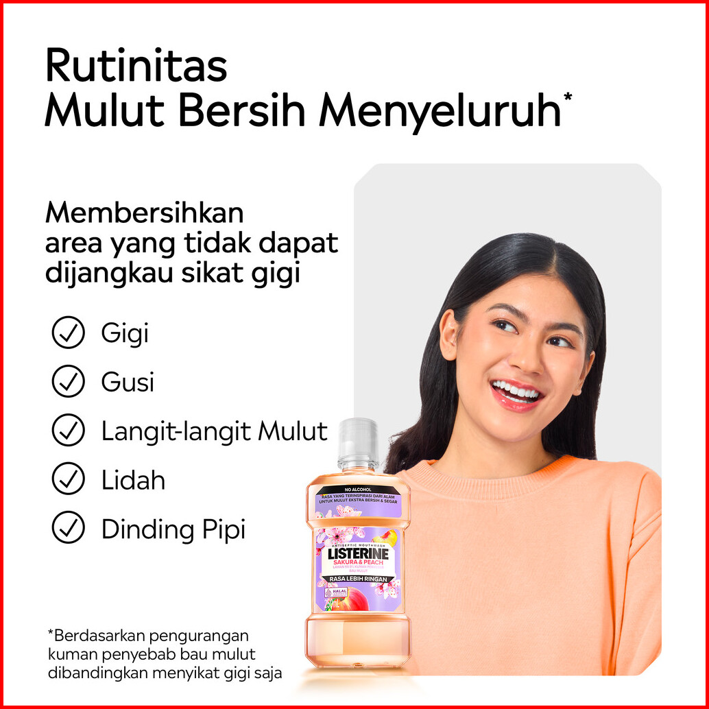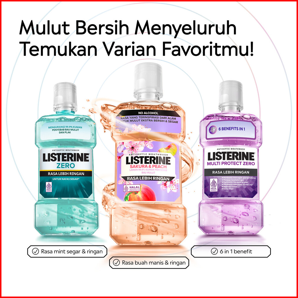 Listerine Sakura Peach Antiseptic Mouthwash Obat Kumur Antiseptik Lawan Bau Mulut - 250 Ml Isi 3