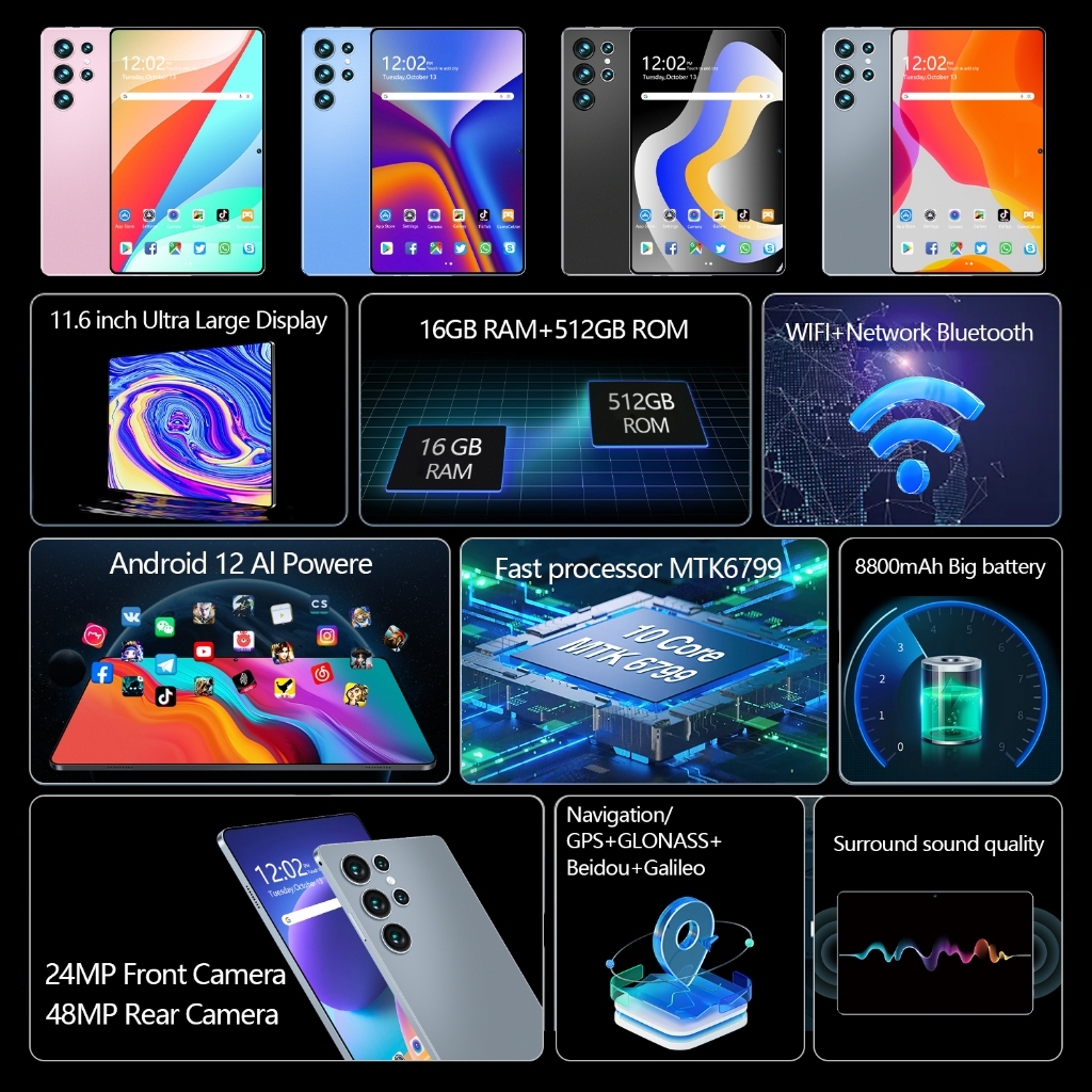 Tablet PC 11.6 inch Tab RAM 16GB+1024GB Tablet Android Tablet Murah Layar Full Screen Layar Besar Wifi 5G Dual SIM Tablet Tablet Pembelajaran Tablet Gaming kantor Cuci Gudang