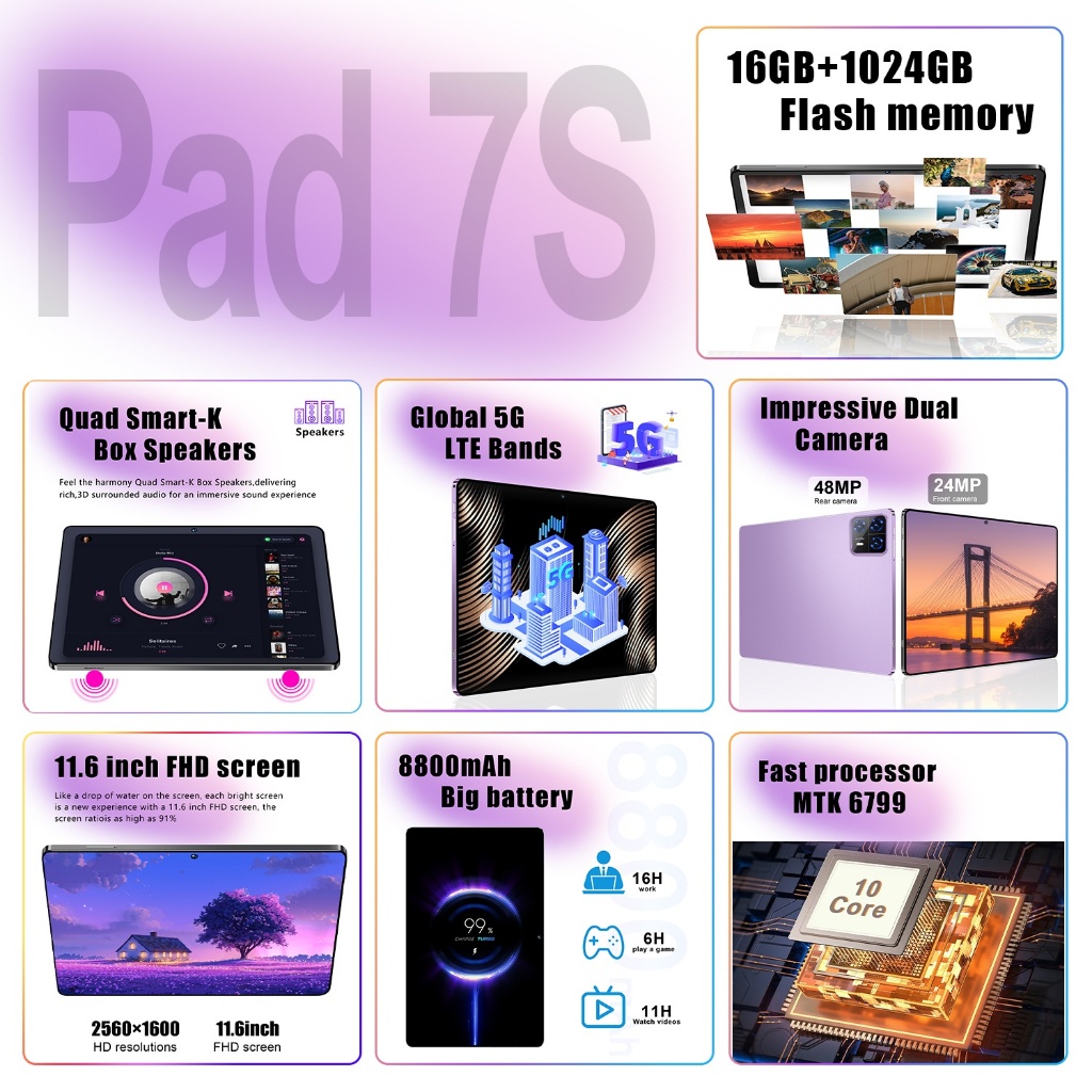 Tablet Pad 7S | RAM 16GB + 1024GB ROM | Tablet + Mouse + Keyboard | 5G Dual SIM Wifi | Layar besar