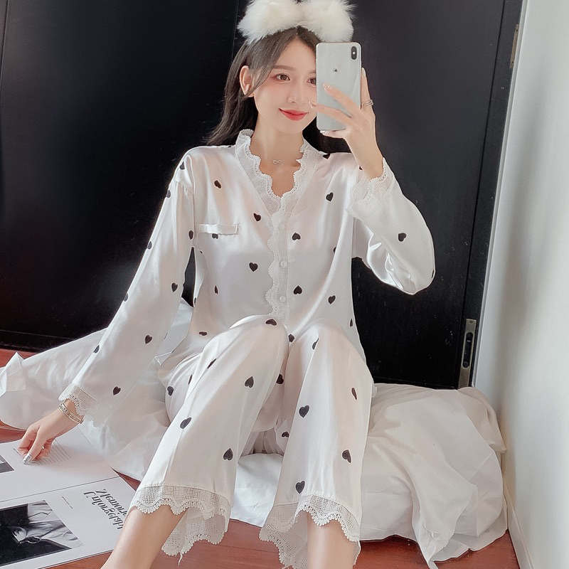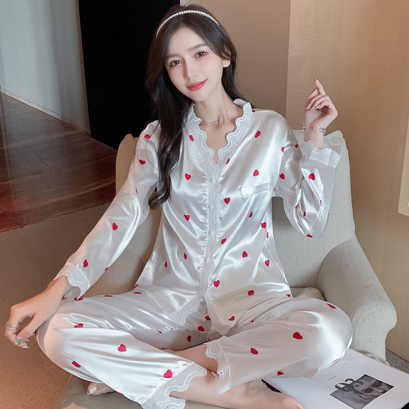 006 Luxury Piyama Satin Lengan Panjang Celana Panjang Kerah Bunga Kancing Hidup Diamond Bahan Satin High Quality Piyama