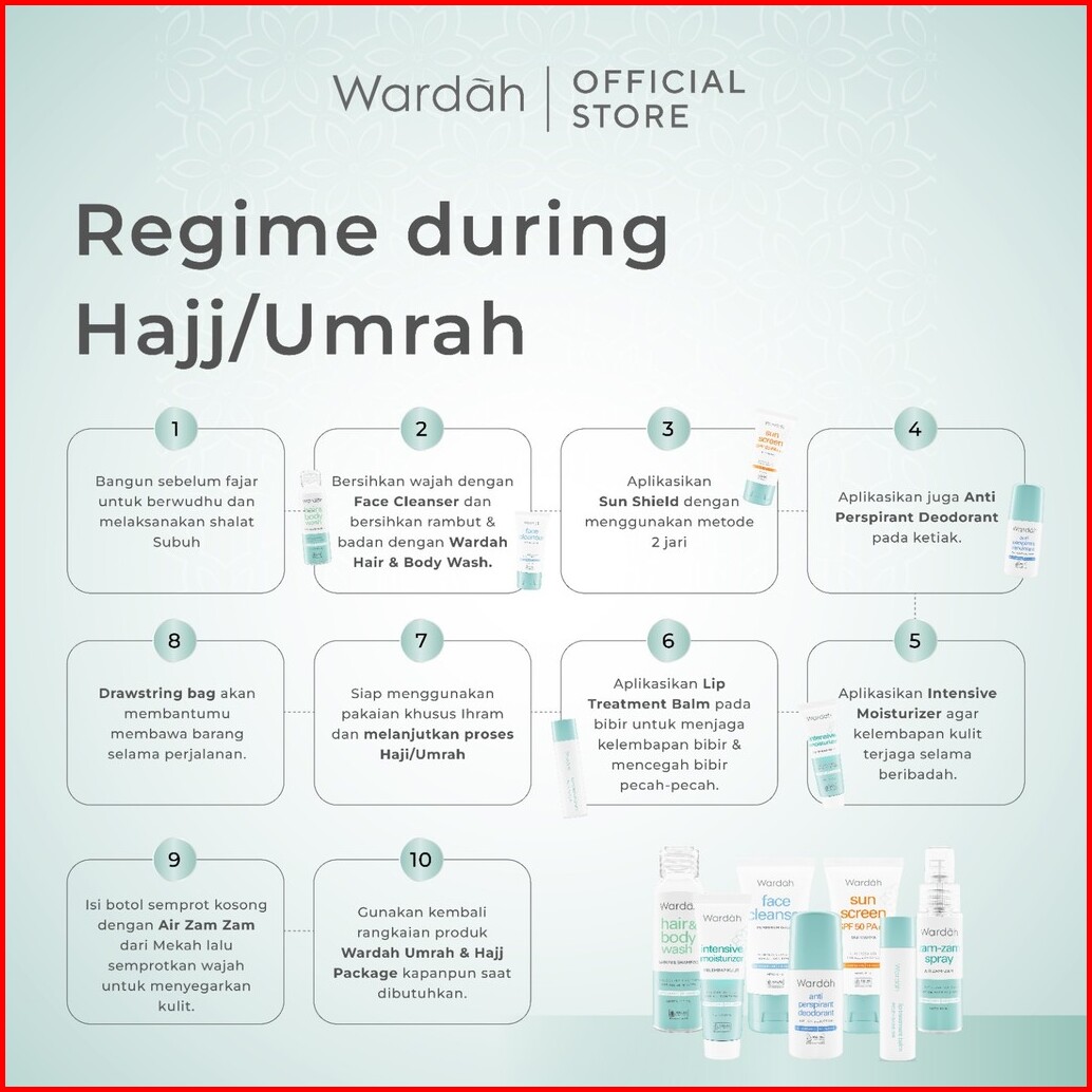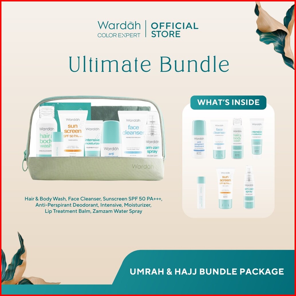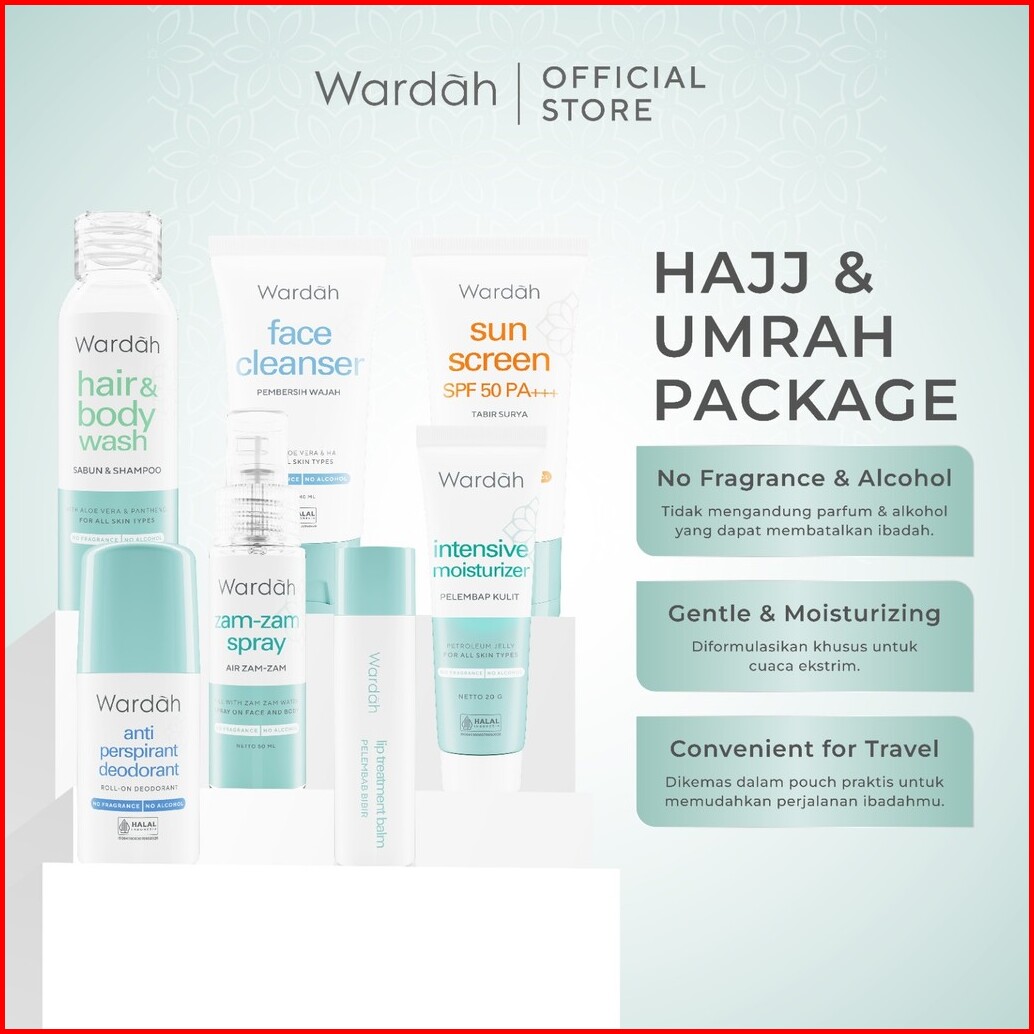 Wardah Umrah Hajj Package - Paket Haji Dan Umroh - Facial Wash Moisturizer Pelembab Wajah Sunscreen Spf 50 Pa Antiperspi